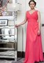 Изумительное вечернее платье в величественном греческом стиле. Скромный v-образный вырез, лиф драпирован мелкими сборками, что зрительно придает пышность формам, две симметричные широкие бретели. Талия утянута поясом. Юбка струится в пол легкими воздушными складками. Наряд поможет создать великолепный образ Богини, только спустившейся с Олимпа.
