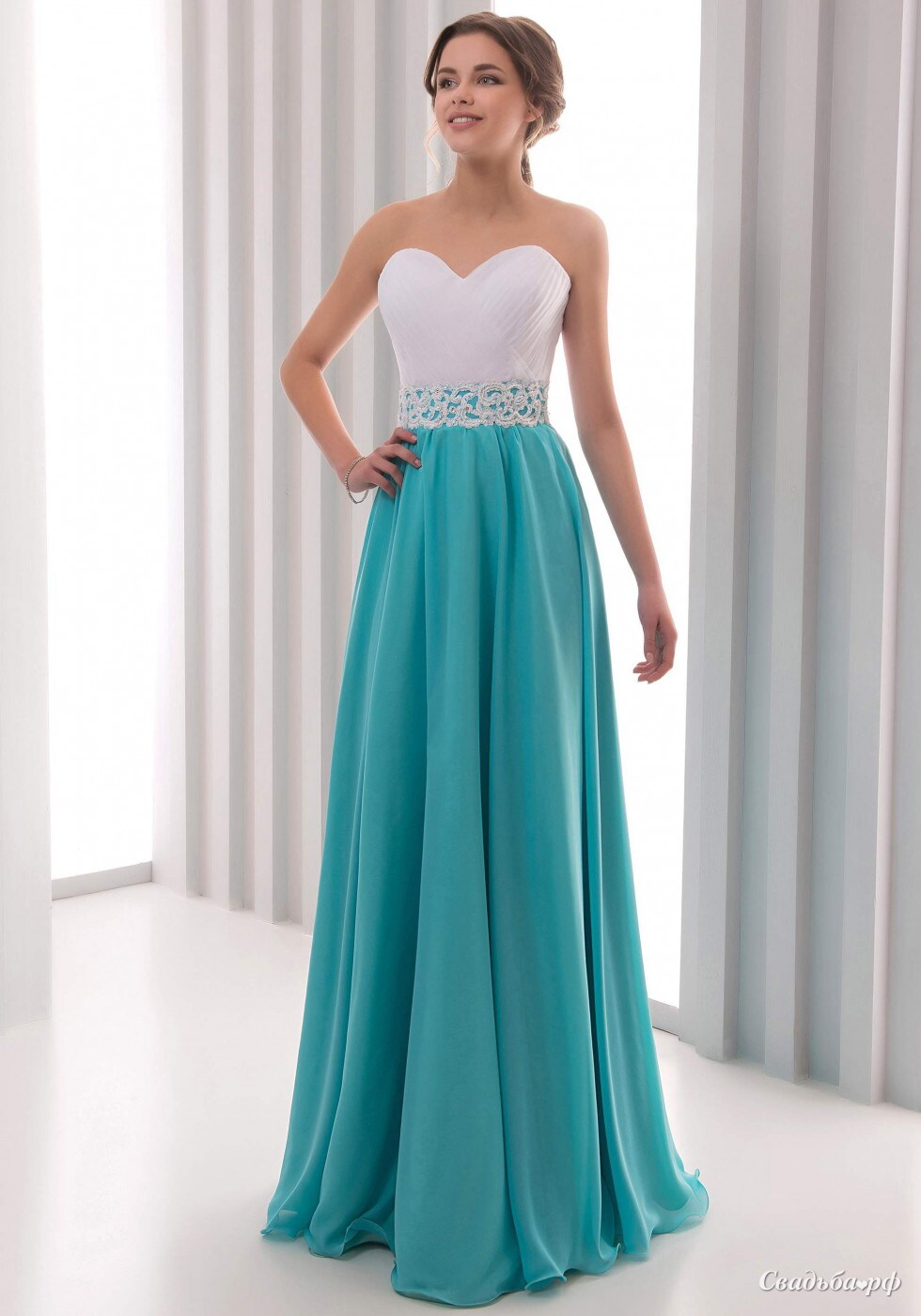 Вечернее декольтированное платье с кружевным поясом, расшитым бисером и пайетками.