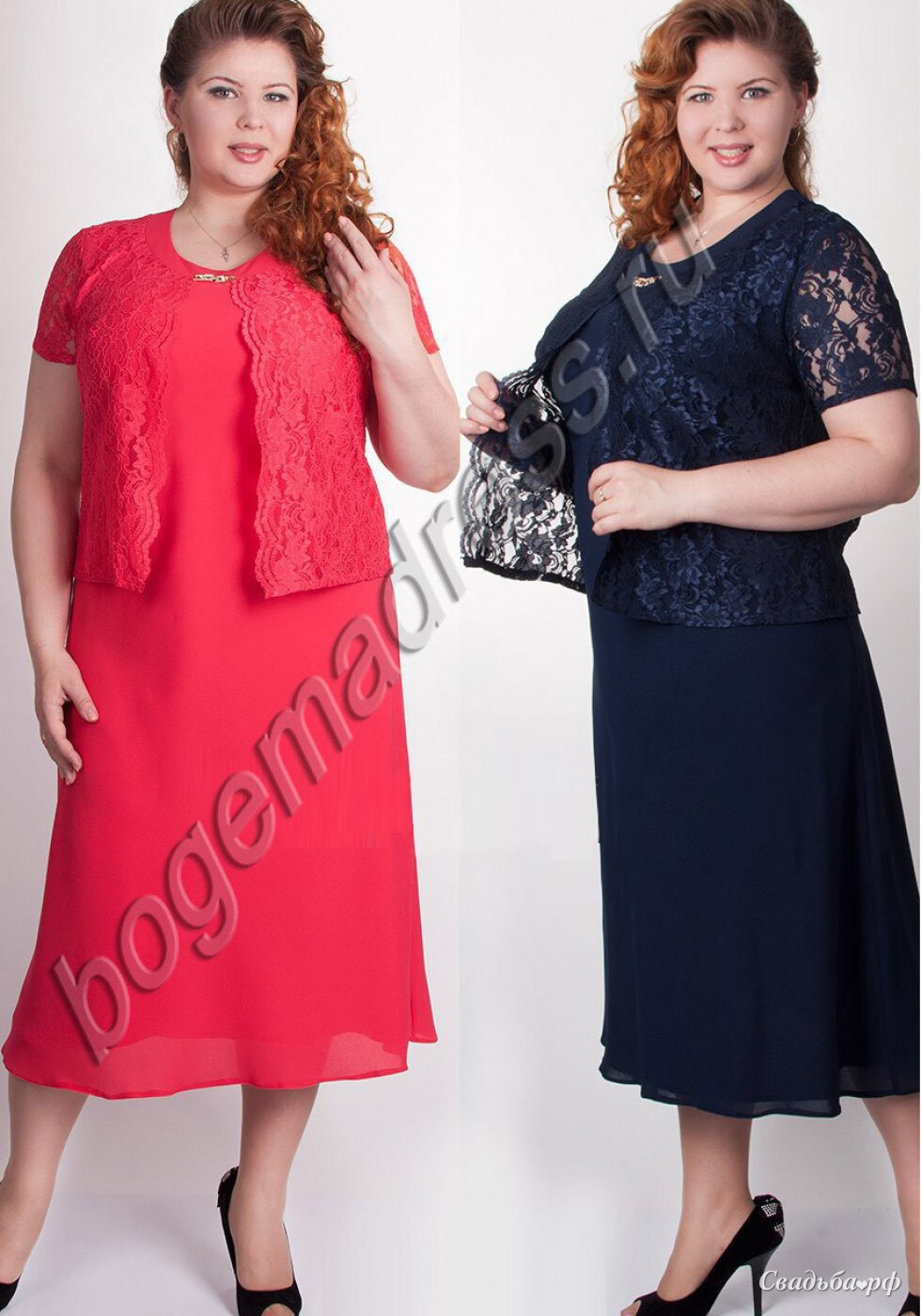 Платье для мамы из шифона с имитацией кружевной кофточки, длина до середины икры.