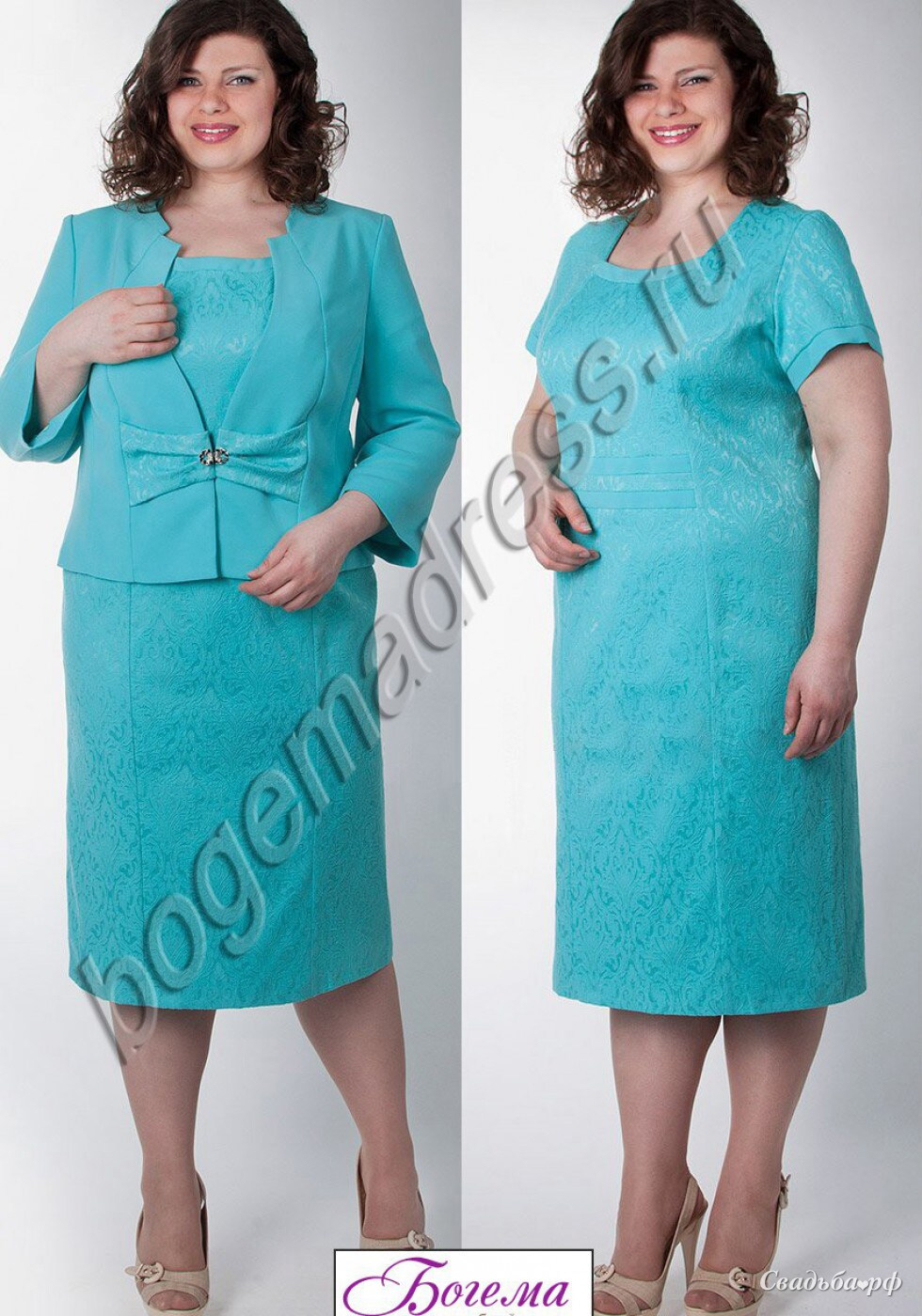 Платье из жаккарда с пиджаком из гладкой ткани для мамы, длина до середины икры.