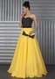 Декольтированное платье с V-образным вырезом, черным корсетом в горох с вышивкой по вырезу и струящейся шифоновой юбкой.