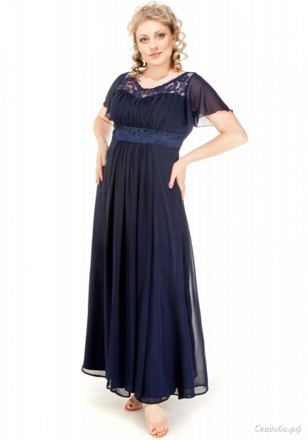 Длинное платье с завышенной талией и рукавчиками из воздушного шифона с кружевной вставкой.
