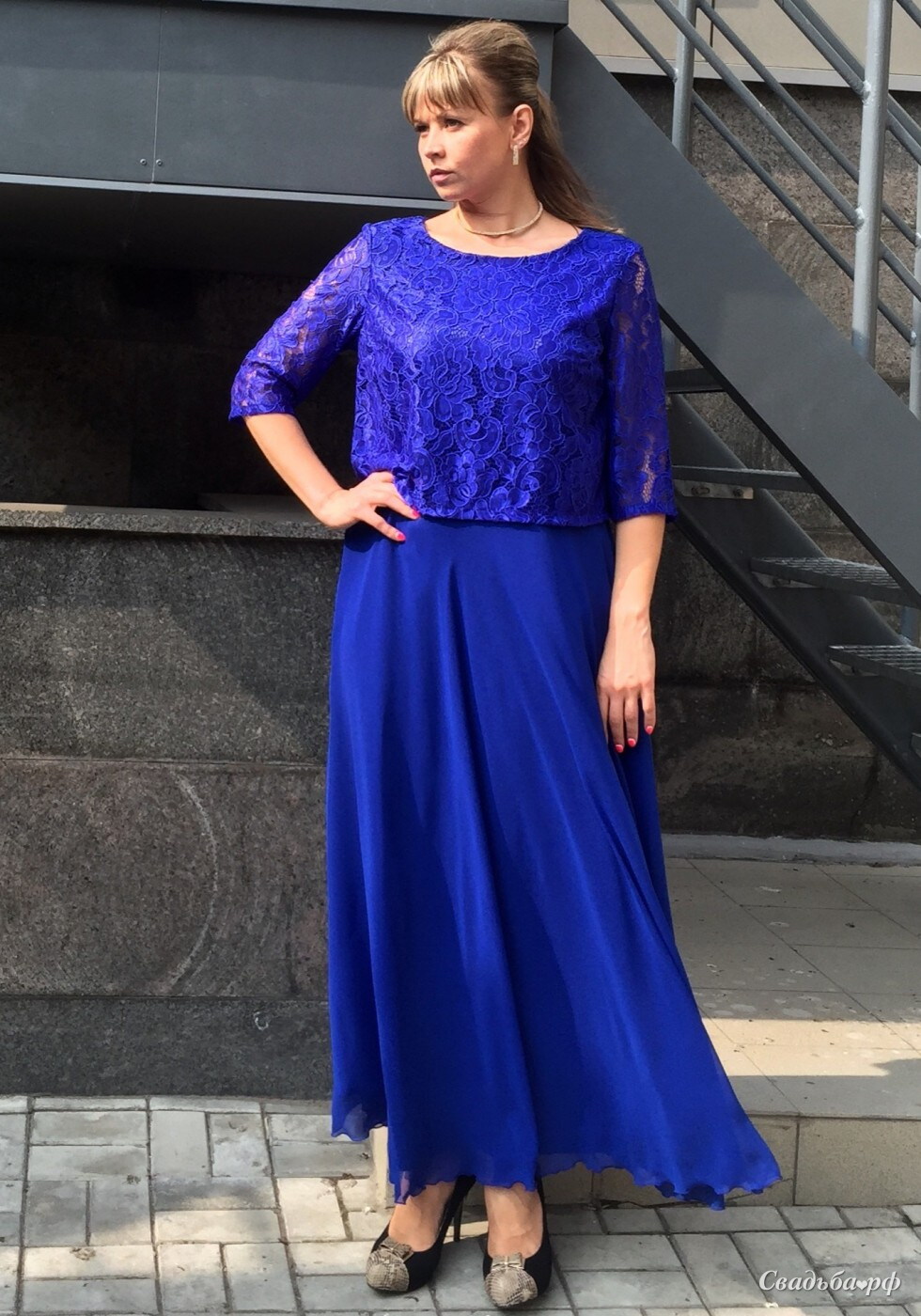 Прекрасное платье с шифоновой юбкой для мам и для подружек невесты. Верх платья из гипюра с рукавами 3/4.