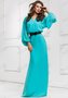 Длинное нарядное платье с рукавом и V-образным вырезом отлично подойдет обладательницам роскошных форм и не только им. Строгие линии платья, такой совершенно однозначный, густого черного оттенка пояс, расшитый вручную сверкающими камнями, удивительно легко сочетаются с воздушным жоржетом, который покрывает собой всю поверхность платья.