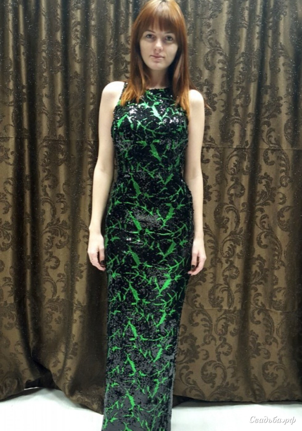 Сверкающее платье из пайеток с пикантным разрезом сзади. Подходит для Нового года.