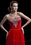 Шикарное платье из струящегося шелка страстного красного цвета. Открытый фигурный лиф платья украшен вышивкой со стразами и бисером. Линия талии выделена тонким декоративным поясом. Длинная, очень широкая юбка делает образ ещё более изысканным и утончённым. Модель представлена также в спокойном кремовом и таинственном синем цвете.