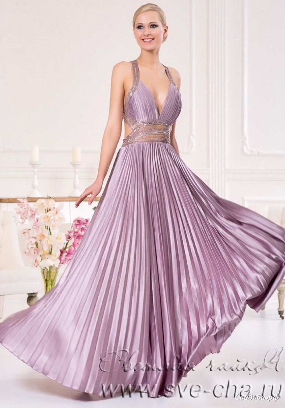 Модель выполнена из однотонного сатинового атласа – шамуз. Лиф жатый, в сочетании с плотным декоративным поясом, который практически полностью прозрачен и вышит вручную пайетками. Отлично поддерживают грудь. Это декольтированное платье с юбкой солнце-плиссе.