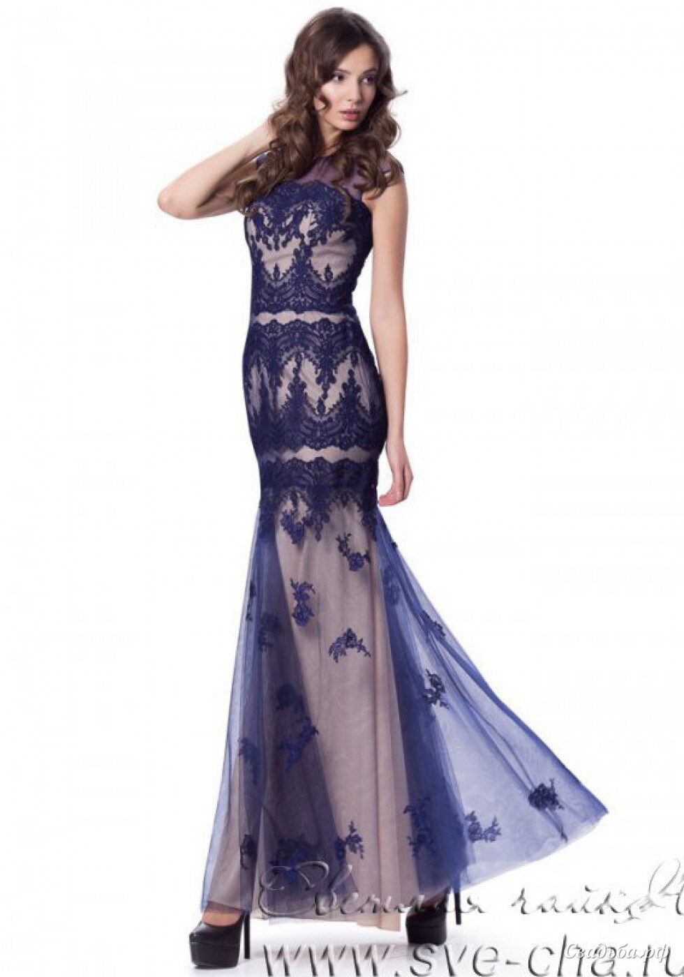Нарядное вечернее платье из тонкого гипюра, украшенное кружевным рисунком станет отличным поводом выйти в свет. Платье силуэт "рыбка", который подчеркивает и создает нежный образ. Платье садится на любую фигуру за счет удачно подобранного материала, который успешно тянется, подчеркивая все ваши достоинства. По спине шнуровка.