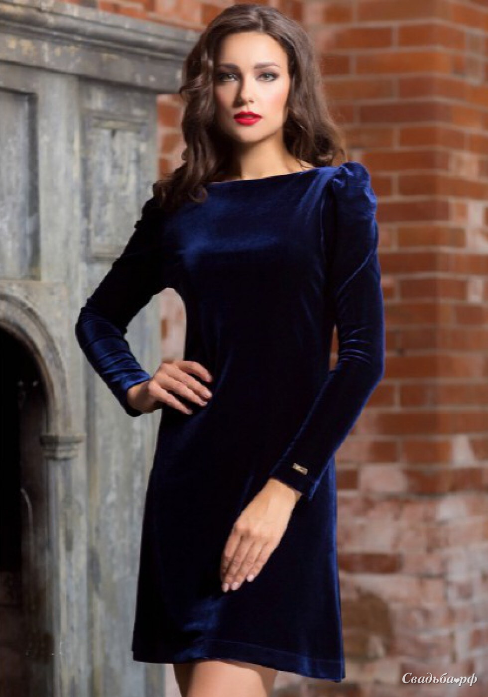 Вечернее короткое бархатное платье.