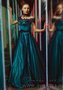 Длинное вечернее платье из атласа. Верх платья выполнен лодочкой из кружева. Талию подчеркивает пояс, также выполненный из кружева.