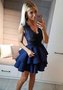 Короткое вечернее платья с двухярусной юбкой и кружевным верхом.