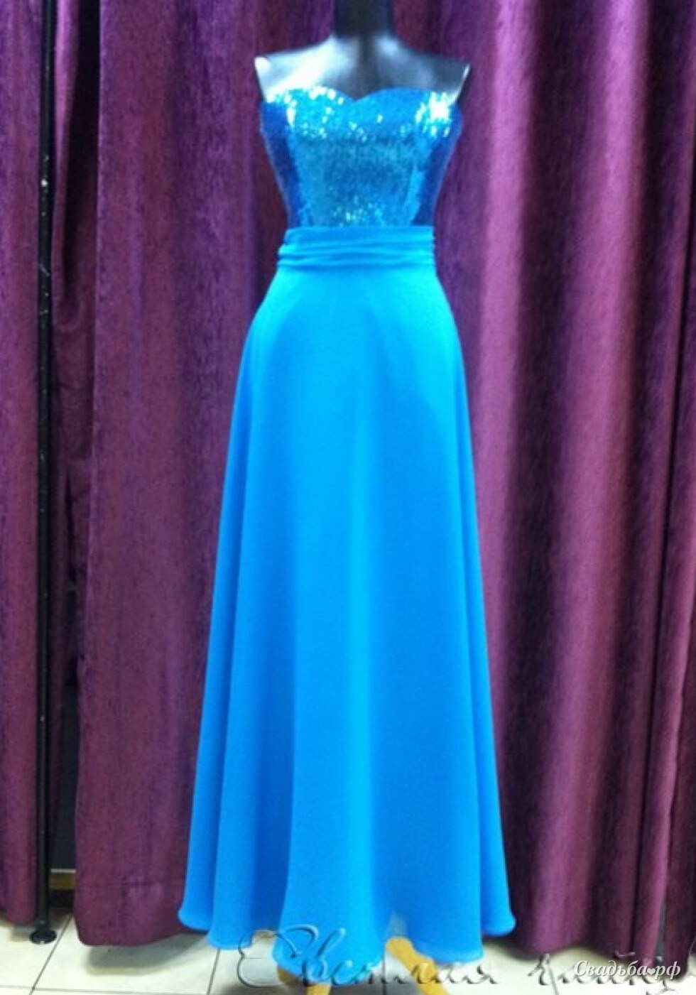 Длинное вечернее платье с шифоновой юбкой. Корсет выполнен из пайеток