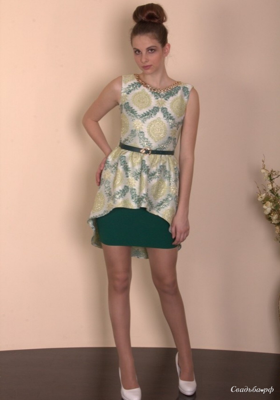 Бренд: Elena Solodkova. Короткое платье с оригинальной баской в стиле "арка" грамотно сочетает в себе классический и гламурный стиль модных течений данного времени.