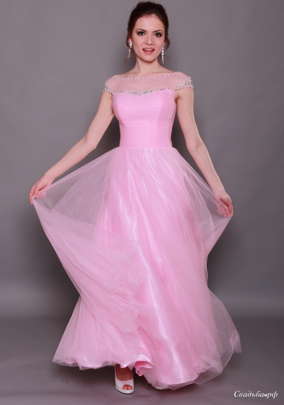 Бренд: Elena Solodkoova. Длинное пышное вечернее платье А-силуэта для изысканной неженки! Верх платья выполнен из сетки, декольте и плечи которой украшены стразами и бусинами. На корсете расположена горизонтальная драпировка из фатина. Верх юбки выполнен из европейского мягкого фатина.