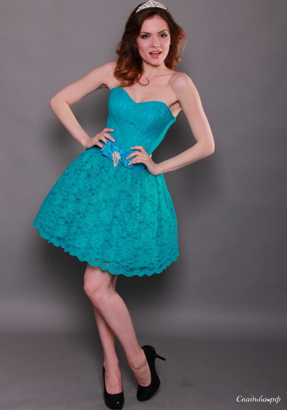 Бренд: Elena Solodkova. Короткое платье из голубого кружева силуэта "принцесса".