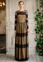 Изящный образ с нотками аристократизма прекрасно подойдет для торжественного момента. Особенностью кроя являются удлиненный рукав и мягкая сборка по талии. Ощущение воздушности придает легкая сетка, украшенная нежным французским кружевом.
