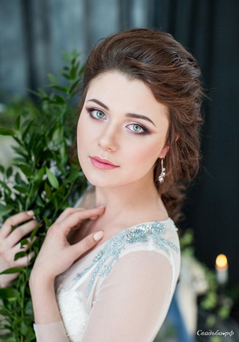 Свадебный макияж подчеркивающий красоту синих глаз