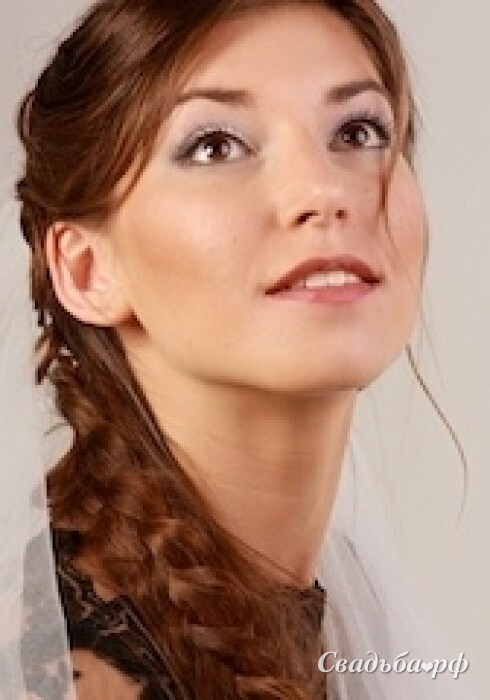 Свадебная причёска с изысканным плетением поможет создать романтичный и очень естественный образ для молоденькой невесты. Пряди зачёсаны назад и слегка зафиксированы на затылке. Оригинальная коса струится по глади выпрямленных волос. Эта причёска будет гармонично сочетаться с лёгким платьем. Модель выполнена на длинных и ухоженных волосах.