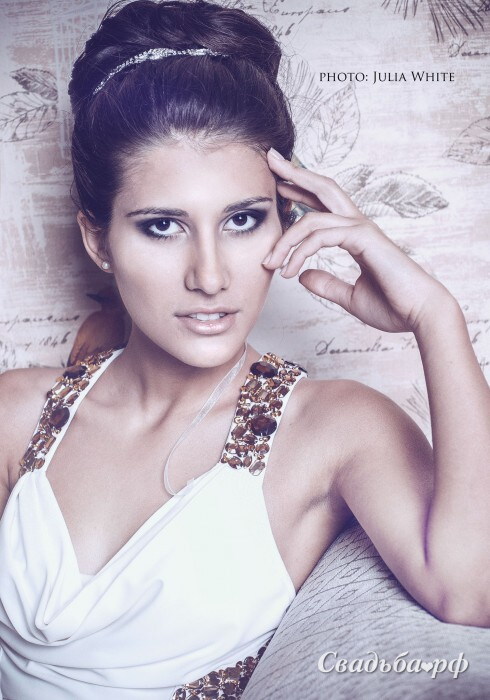 Образ "Красавица Кипра" Относится к классике свадебного стиля. Прическа выполнена на очень длинных волосах. Макияж выполнен с учетом дневного света и съемки камерой. С этим макияжем вы будете красивы и при дневном освещении, в ресторане при искусcтвенном освещении, а также, немаловажно, на фотографиях. Аксессуар в прическе: лента со стразами на металле - не отягощает голову, создает минимум украшения, которого достаточно к данному стилю.