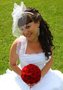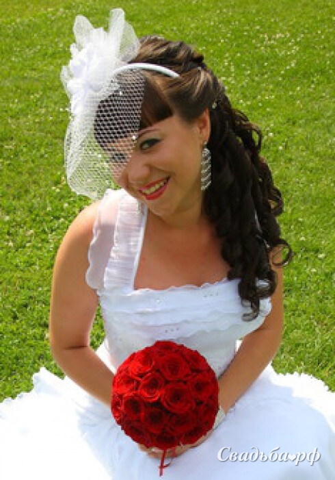 Свадебная причёска в греческом стиле дополнена кокетливым ободком с дизайнерской вуалью из белой ткани. Модель особенно эффектно смотрится с чёлкой и длинными волосами. Пряди зачёсываются назад и легко фиксируются на затылке. Свободные локоны струятся по плечам и спине. Такая укладка подходит любому типу лица.